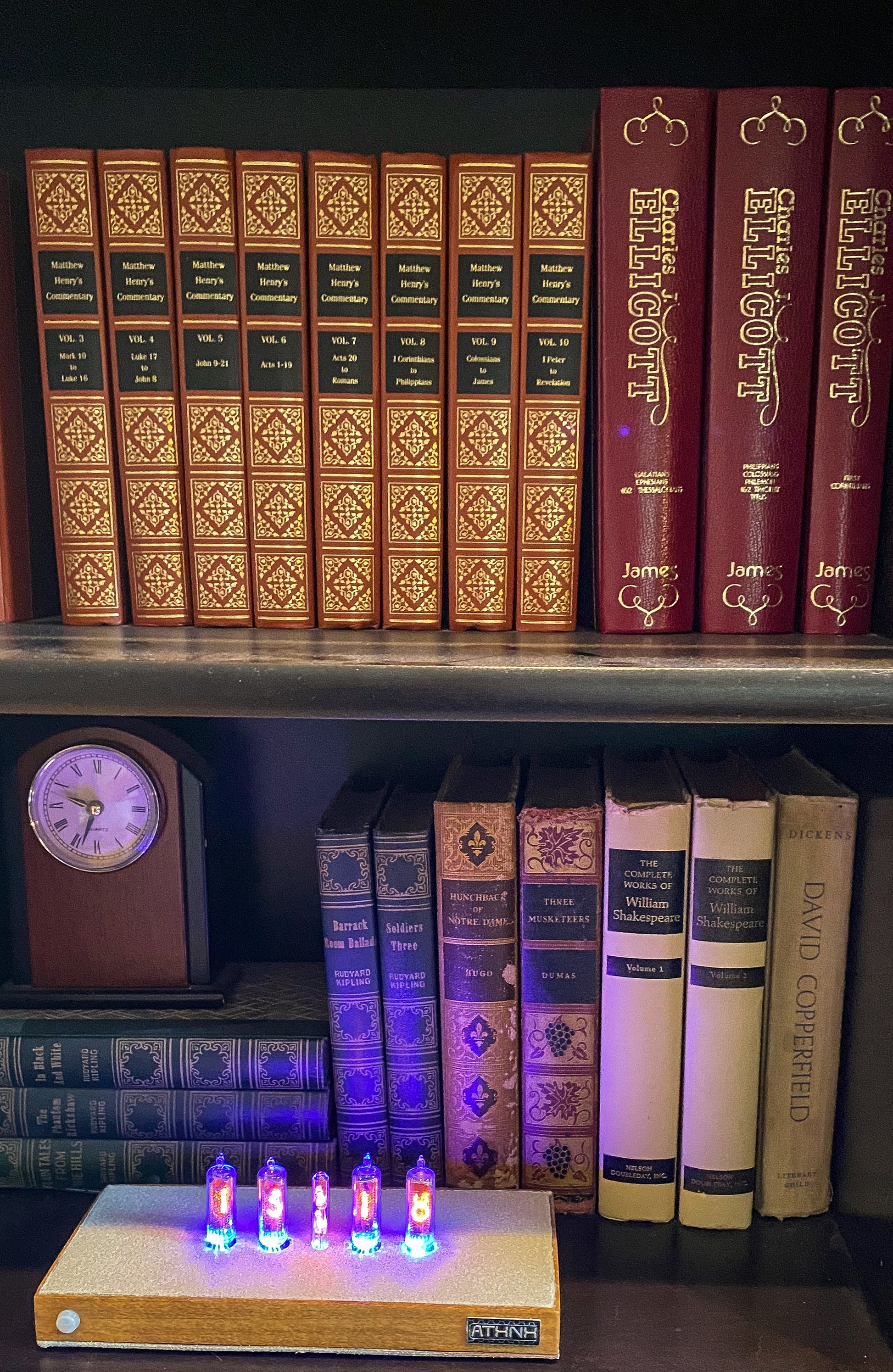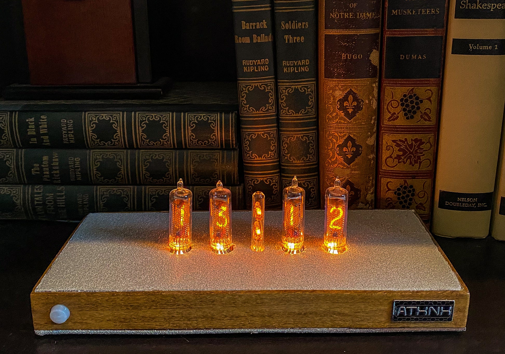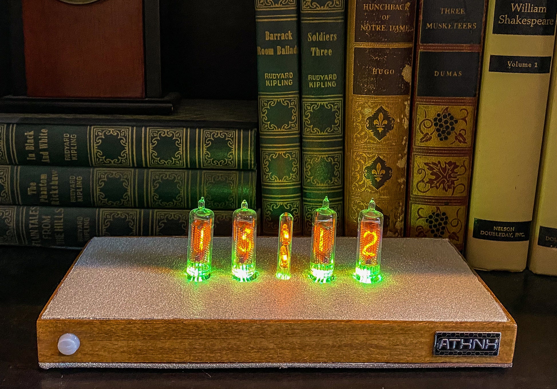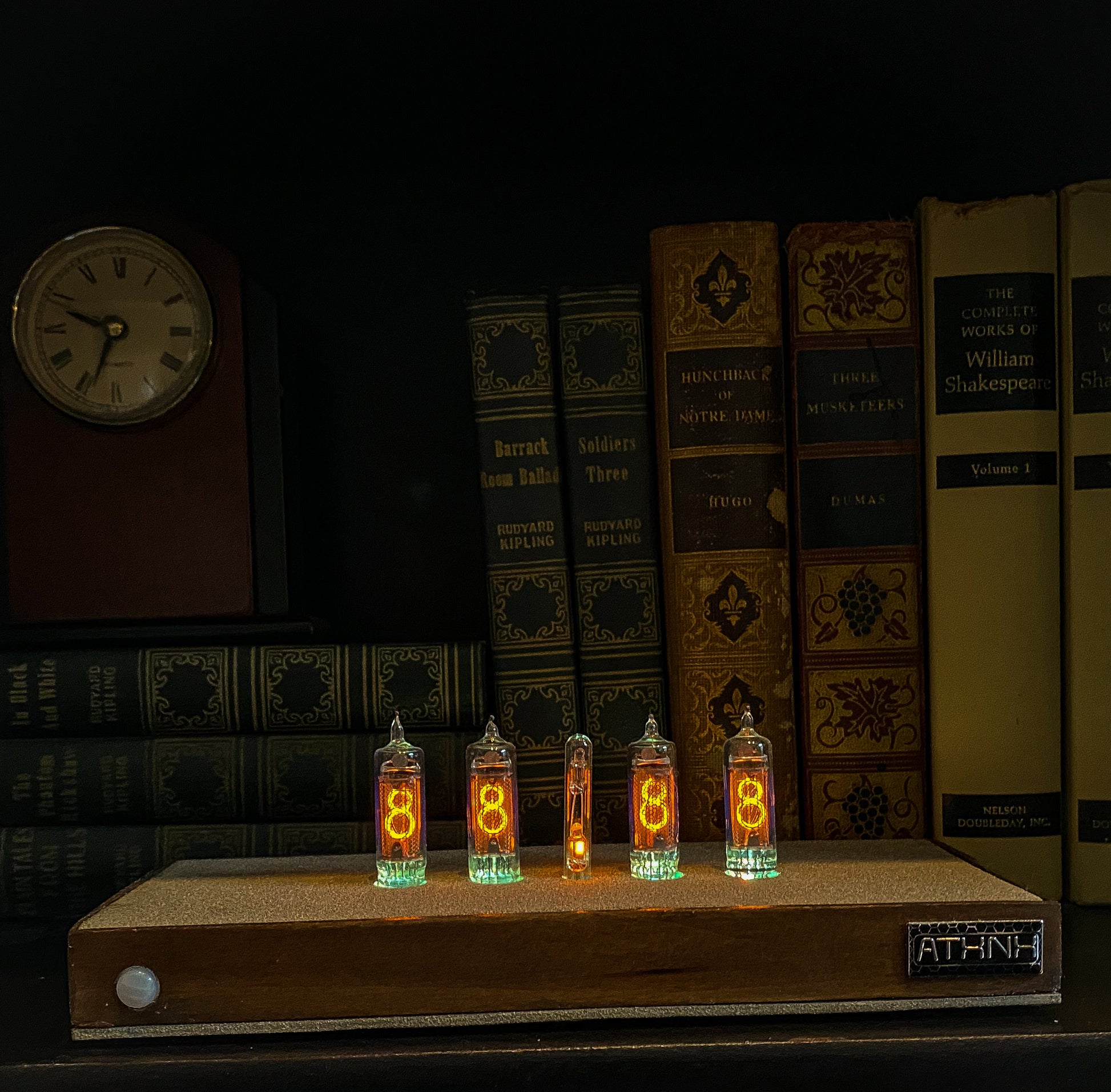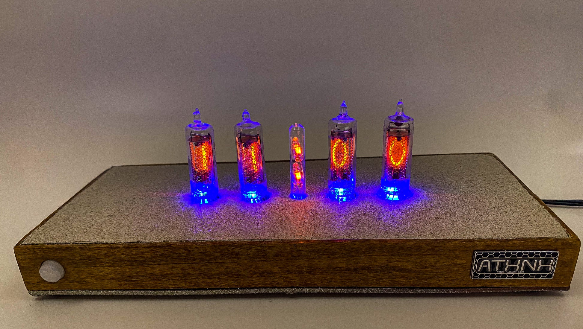 Retro meets modern in this small nixie clock. Designed/Programmed and Crafted by hand in Austin, TX USA from international parts. Your clock is a numbered original with a certificate of authenticity by the original creator. Own a piece of history with this showpiece for your home or office. Photos are of the clock being sold.