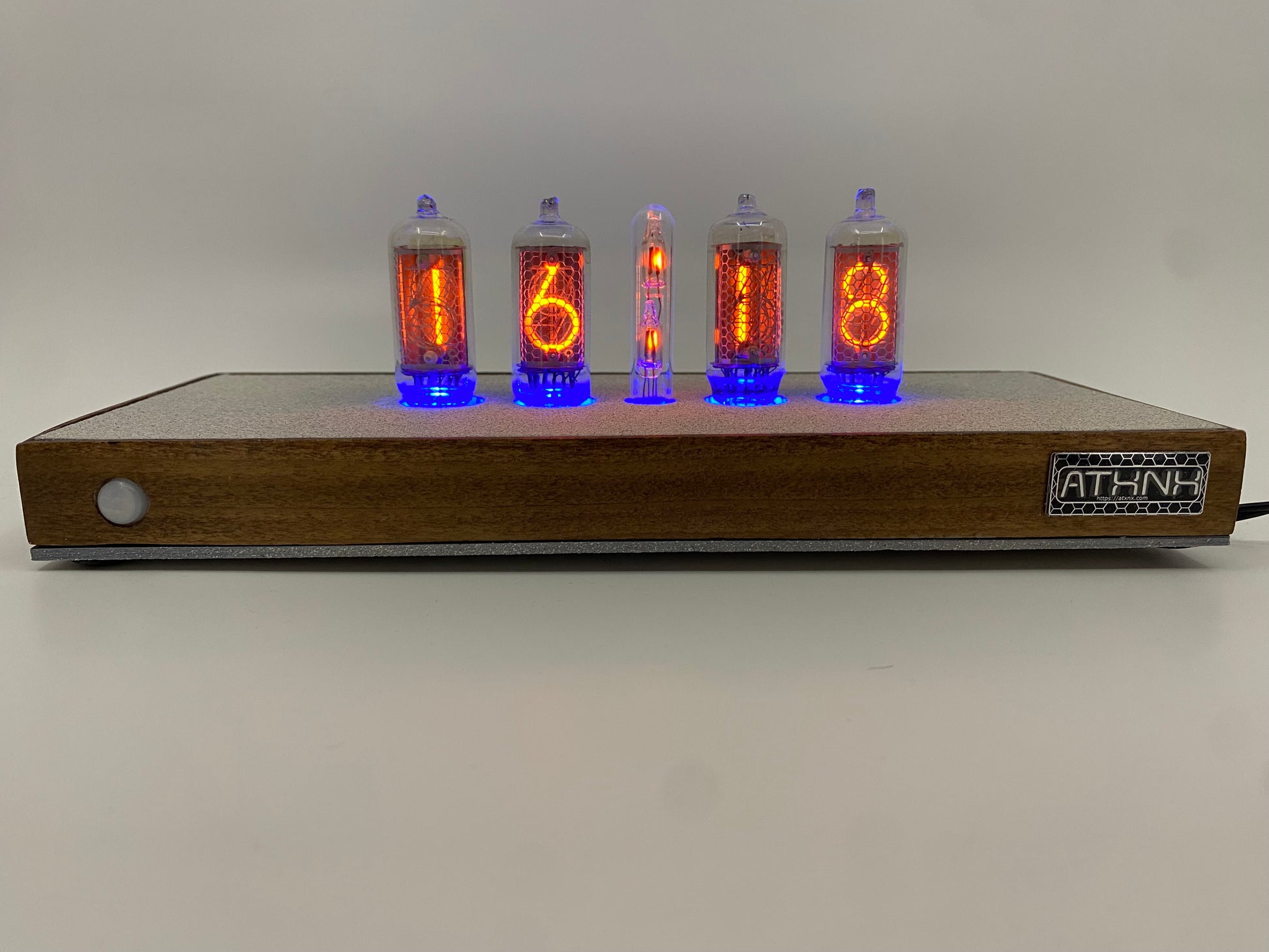 Retro meets modern in this medium nixie clock. Designed/Programmed and Crafted by hand in Austin, TX USA from international parts. Your clock is a numbered original with a certificate of authenticity by the original creator. Own a piece of history with this showpiece for your home or office. Photos are of the clock being sold.