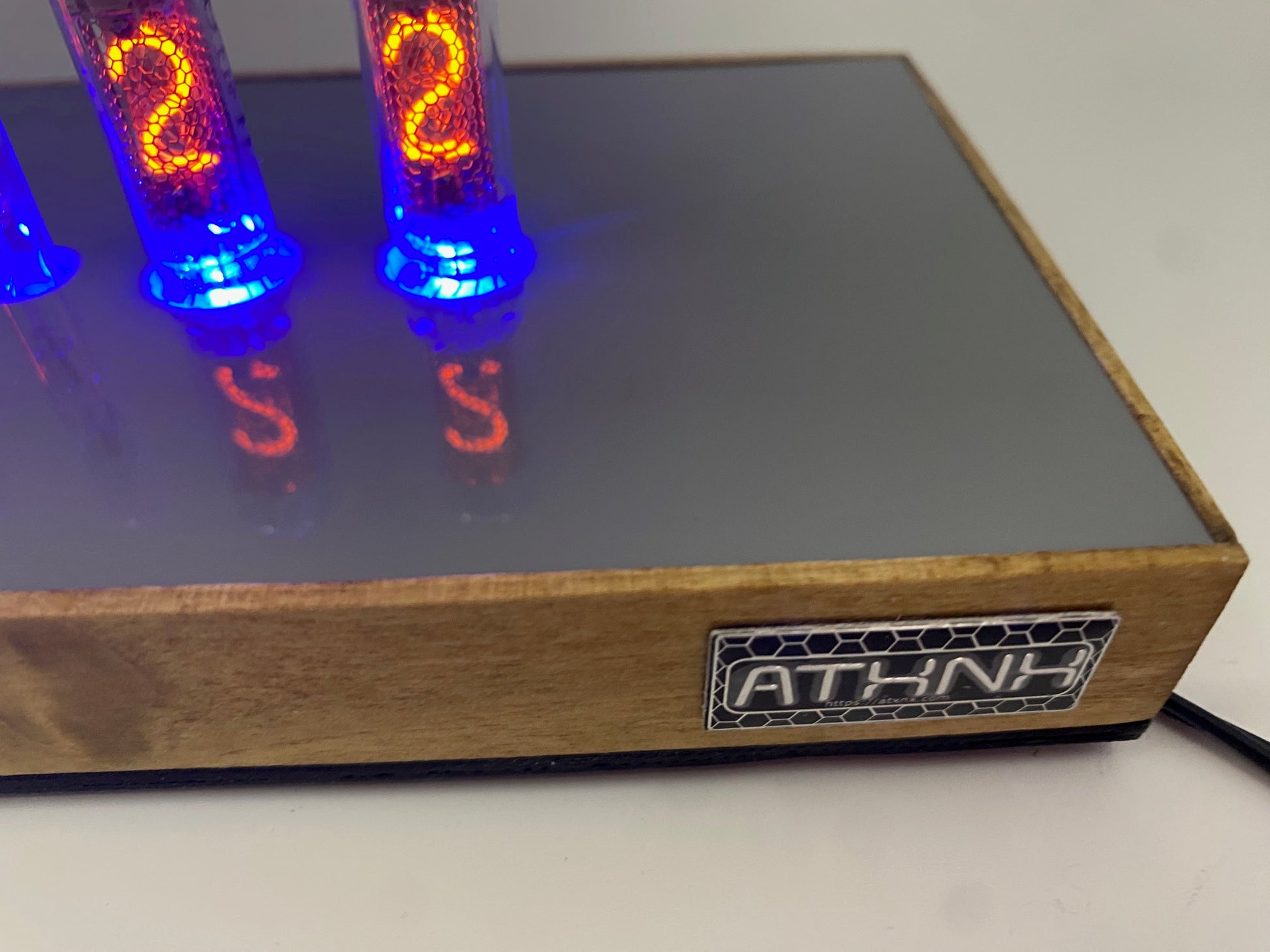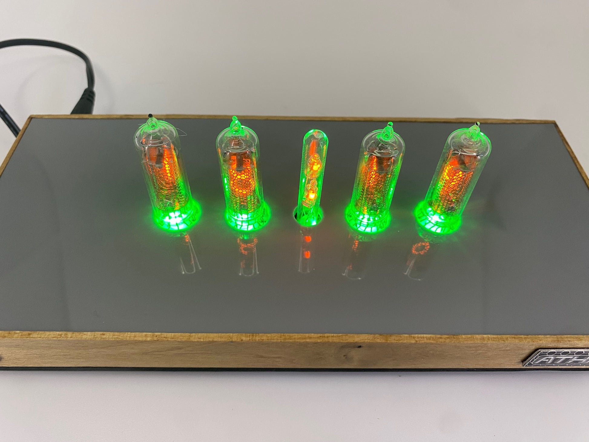 Retro meets modern in this small nixie clock. Designed/Programmed and Crafted by hand in Austin, TX USA from international parts. Your clock is a numbered original with a certificate of authenticity by the original creator. Own a piece of history with this showpiece for your home or office. Photos are of the clock being sold.
