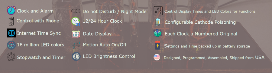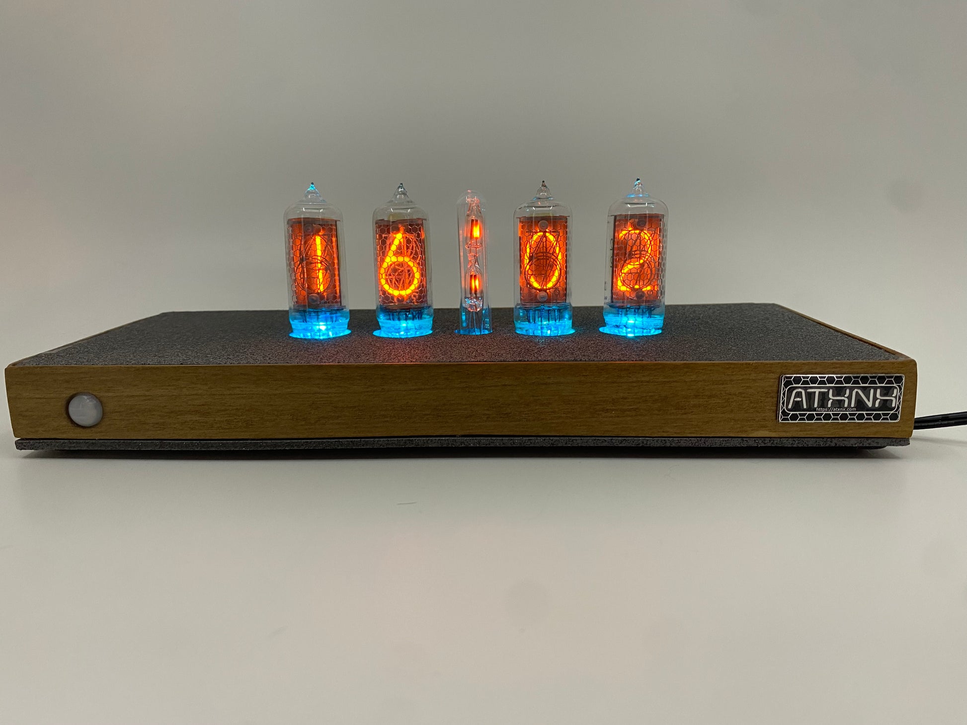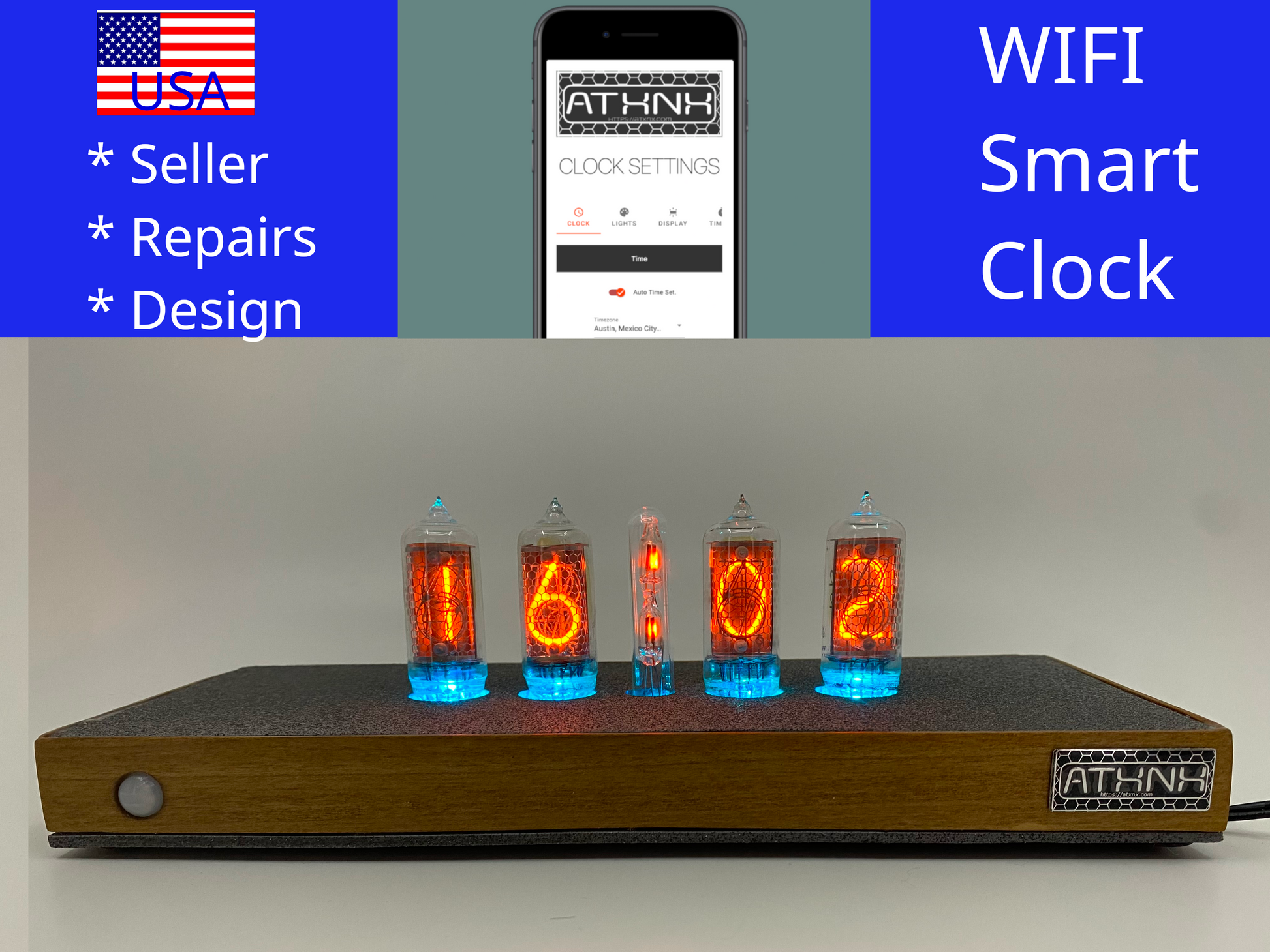 Retro meets modern in this medium nixie clock. Designed/Programmed and Crafted by hand in Austin, TX USA from international parts. Your clock is a numbered original with a certificate of authenticity by the original creator. Own a piece of history with this showpiece for your home or office. Photos are of the clock being sold.