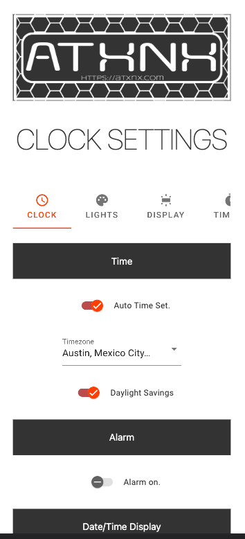 Control how long the clock displays date/time and how long it is dark (to save lamp life)